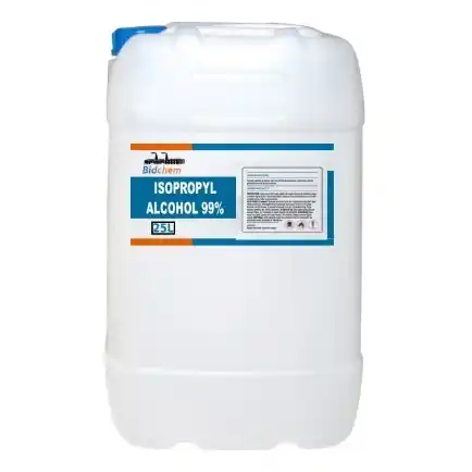 Bidchem supplies Isopropyl Alcohol (IPA) 99% in 5L, 25L, and 210L packaging for industrial cleaning, electronic maintenance, laboratory use, and controlled disinfection applications across South Africa. This high-purity grade is valued for its rapid evaporation, low residue, and effective solvent action, particularly where moisture sensitivity is critical.